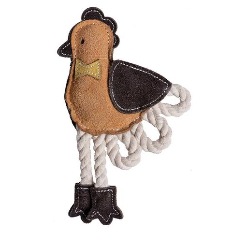 ◆夢中でカミカミしちゃう牛革とコットンロープを使用した、かわいいにわとり型のおもちゃ。