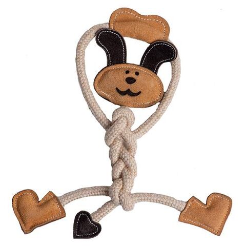 ◆夢中でカミカミしちゃう牛革と編み込みロープを使用した、かわいいうさぎ型のおもちゃ。