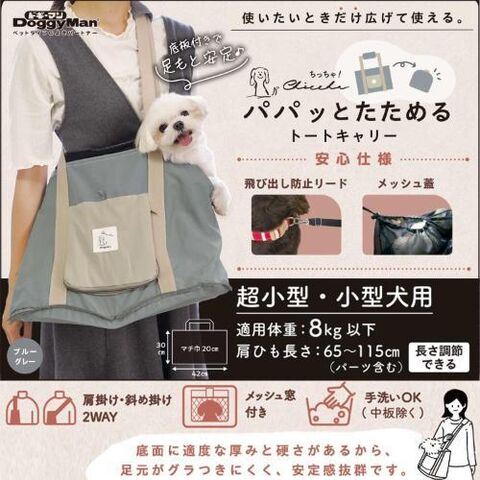 ドギーマンハヤシ Chiccha! パパッとたためる トートキャリー ブルーグレー パパツトト-トキヤリ-ブル-GL 【返品種別B】