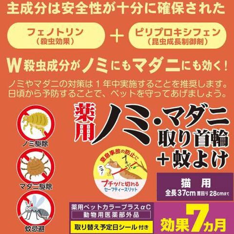 ◆有効成分「フェノトリン」を1.5倍配合。※「フェノトリン」の配合量を「薬用ノミ取首輪+蚊よけ」に比べて増量しました。