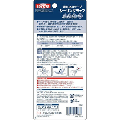 ヘンケルジャパン ロックタイト 漏れ止めテープ シーリングラップ 1・2・3 幅25mm×長さ1m(グレー) 1個 LOCTITE LSW-10G 【返品種別B】