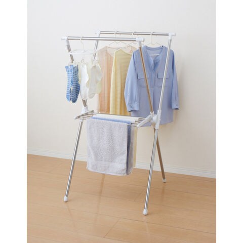 ◆タオル掛け付きのX型室内物干しスタンド。