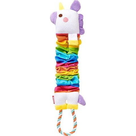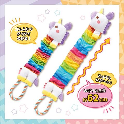 引っぱるとカラフルな体がのびる、ロングタイプのおもちゃ