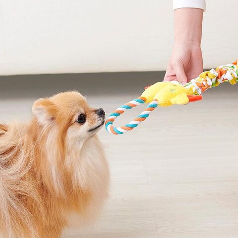 ◆顔部分はピーピー笛入り、足部分は引っぱり合いがしやすいロープ付き