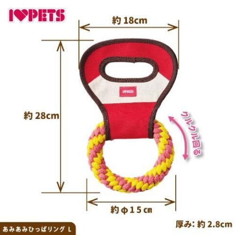◆コットンロープでできたリングは、噛み心地が良く、デンタルケア効果も期待できるため、歯みがきおもちゃとしてもお使いいただけます。