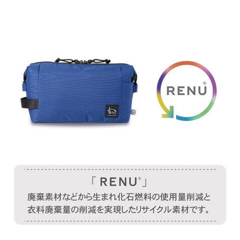 廃棄衣料などから生まれたリサイクル素材RENUを採用したサスティナブルなインナーポーチ