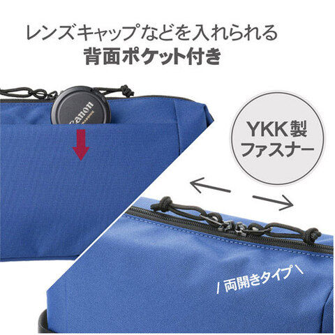 背面にはレンズキャップなどを入れられるポケット付きです。