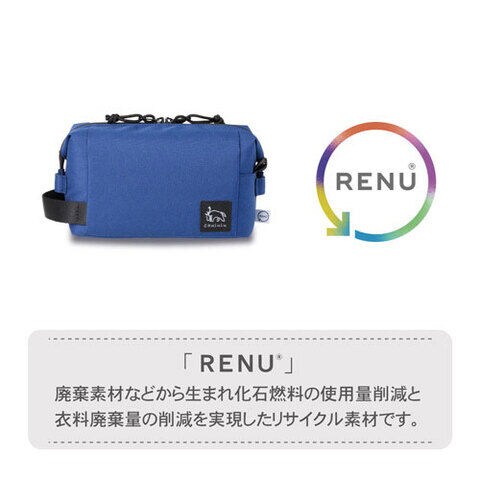 廃棄衣料などから生まれたリサイクル素材RENUを採用したサスティナブルなインナーポーチ