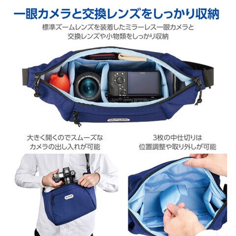わずか約230gの超軽量設計で、カメラを保護しながら軽快に持ち運べるショルダーバッグです。