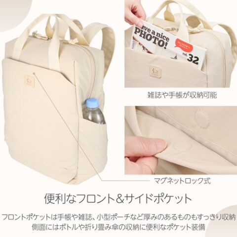 バックパックとしても、手提げバッグとしても使える2WAY仕様は、タウンユースにぴったりです。