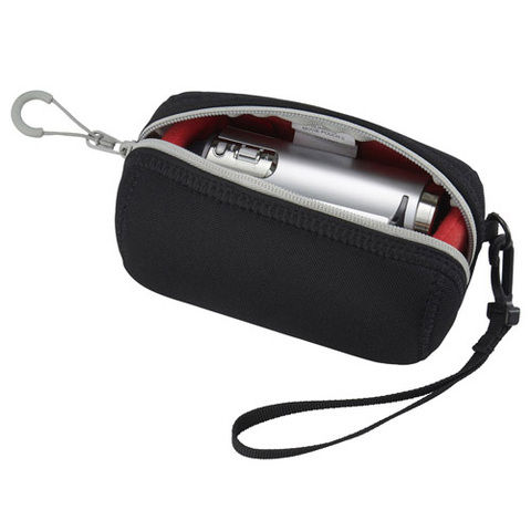指が入れられるリングタイプの引き手と直線的なファスナーで素早く開閉ができ、ビデオカメラの取り出しがしやすい構造です。