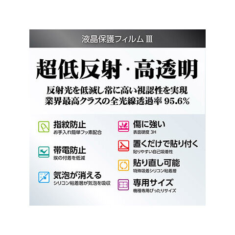 フィルム表面の「すり傷」や「爪あと」などが残りにくい表面硬度と保護力で液晶画面を美しい状態のまま保ちます。