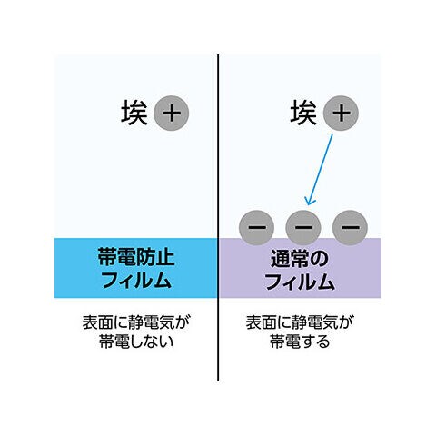 帯電防止効果により静電気の発生を抑え、液晶画面に埃や塵を寄せ付けません。