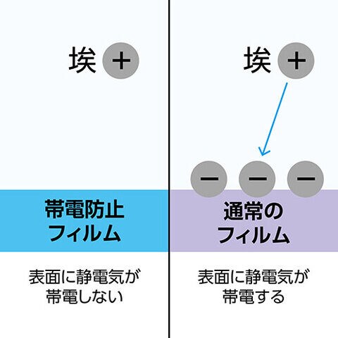 帯電防止効果により静電気の発生を抑え、液晶画面に埃や塵を寄せ付けません。