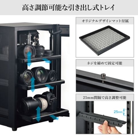 湿度設定はカメラ・レンズの保管に適した35~45%を推奨します。