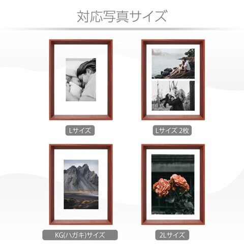Lサイズ、KG(ハガキ)サイズ、2Lサイズの写真を飾ることができます。