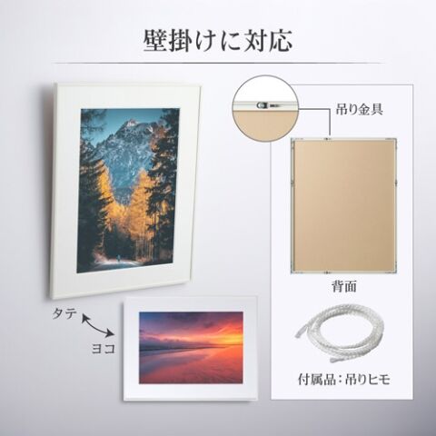 付属品の吊りヒモと裏面の吊り金具を使用して壁掛けでの使用が可能です。