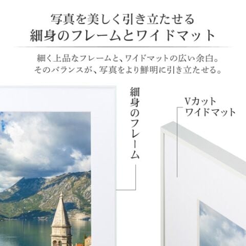 ◆作品を引き立たせる細身のフレームとワイドマット