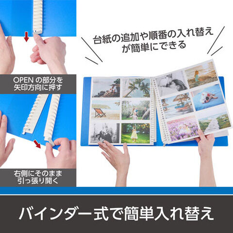 また、別売りのLサイズ用替台紙を追加して収納枚数を増やしたり、Lサイズだけではなく2Lや4切、ポストカードサイズ用の替台紙を追加することで、