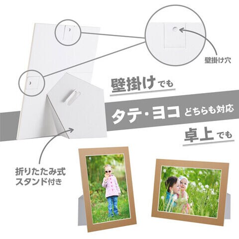 背面には、タテ置き、ヨコ置きどちらでも飾れる折りたたみ式のスタンドが付いています。