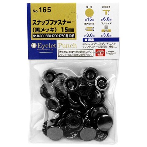 SK11 スナップファスナー(黒メッキ) 15mm 藤原産業 NO.165 【返品種別B】