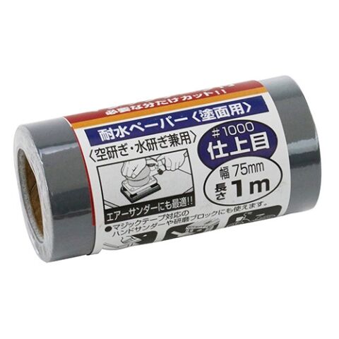 SK11 サンディングロール マジックテープ付き 耐水ペーパー 仕上目(幅75mm×長さ1m) 粒度:1000 藤原産業 #1000タイスイ 【返品種別B】