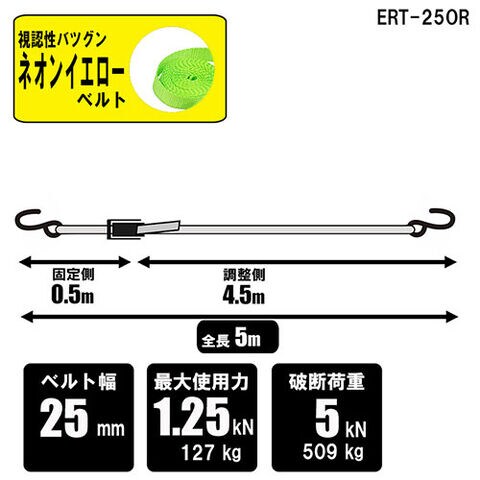E-Value ラチェット式ベルト荷締機 (ライムグリーン・使用荷重127kg 幅25mm 長さ5m) ERT-25OR 【返品種別B】