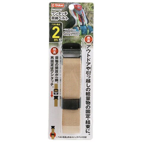 E-Value ワンタッチ荷締ベルト(コヨーテ・使用荷重25kg 幅25mm 全長2m) PT-2520CT 【返品種別B】