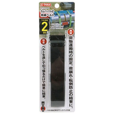 E-Value カムバックル式荷締ベルト(ブラック・使用荷重82kg 幅25mm 全長2m) BT-2520BK 【返品種別B】