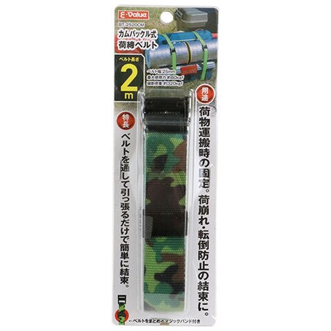 E-Value カムバックル式荷締ベルト(迷彩・使用荷重82kg 幅25mm 全長2m) BT-2520CM 【返品種別B】