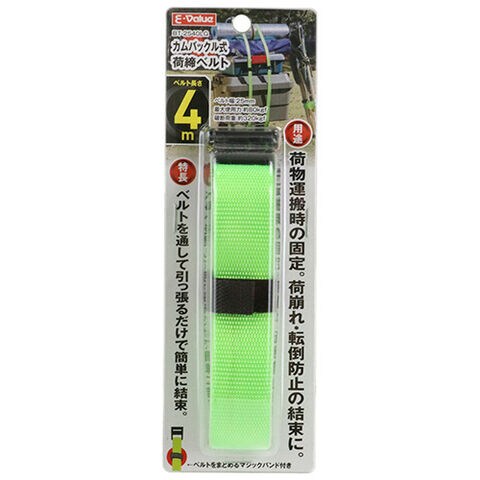E-Value カムバックル式荷締ベルト(ライムグリーン・使用荷重82kg 幅25mm 全長4m) BT-2540LG 【返品種別B】