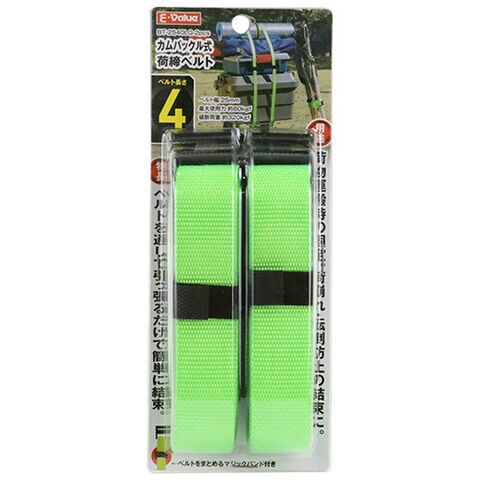 E-Value カムバックル式荷締ベルト(ライムグリーン・使用荷重82kg 幅25mm 全長4m) BT-2540LG 2pcs 【返品種別B】