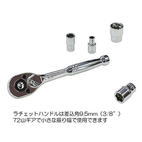 ◆72山ギア採用のラチェットハンドル狭い場所でも作業性抜群です。