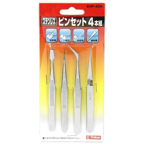E-Value ステンレスピンセット 4本組 藤原産業 EHP-4SN 【返品種別B】