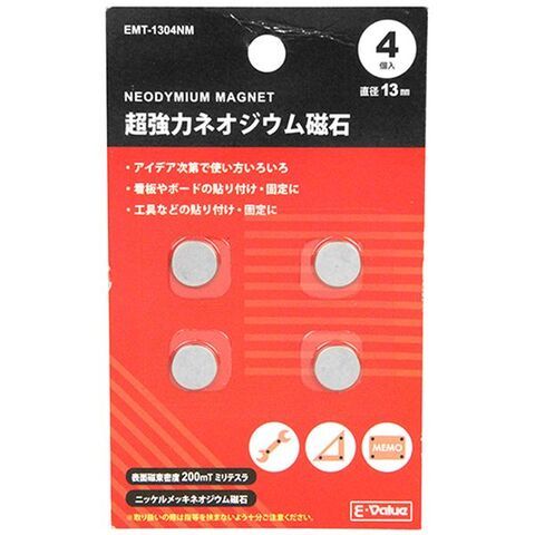 E-Value 超強力ネオジウム磁石 13mm 4個 藤原産業 EMT-1304NM 【返品種別B】