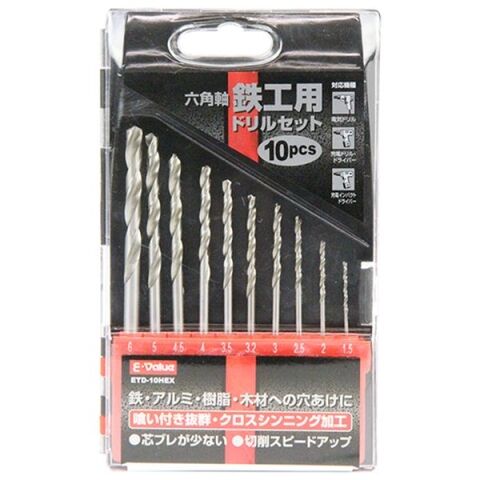 E-Value 鉄工ドリルセット 6.35mm6角軸 10本セット 藤原産業 ETD-10HEX 【返品種別B】