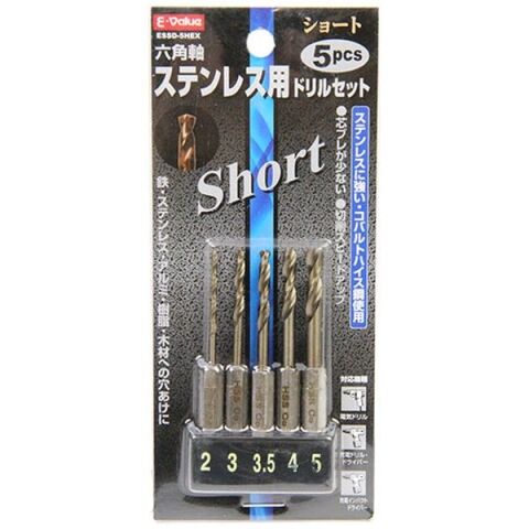 E-Value ショートステンレスドリルS 6.35mm6角軸 5本セット 藤原産業 ESSD-5HEX 【返品種別B】