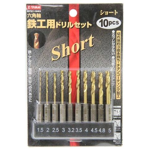 E-Value ショートチタン鉄工ドリルS 6.35mm6角軸 10本セット 藤原産業 ESTDT-10HEX 【返品種別B】