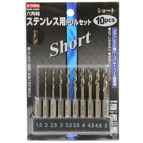 E-Value ショートステンレスドリルS 6.35mm6角軸 10本セット 藤原産業 ESSD-10HEX 【返品種別B】