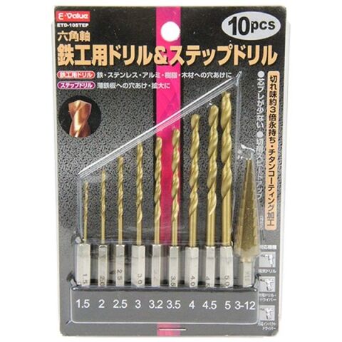 E-Value 鉄工ドリル&ステップドリル 6.35mm6角軸 10本セット 藤原産業 ETD-10STEP 【返品種別B】