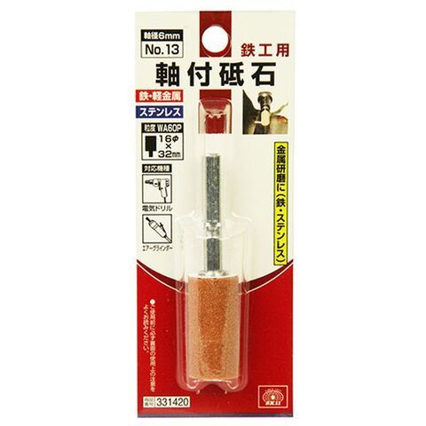 SK11 軸付砥石 鉄工用 軸径6mm 長さ32mm 砥石16mm 藤原産業 ジクツキトイシテッコウヨウNO.13 【返品種別B】