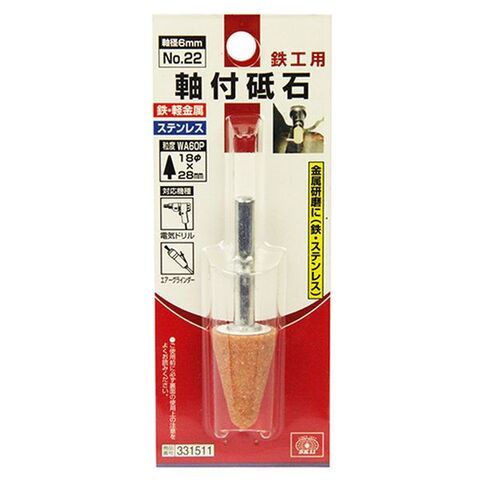 SK11 軸付砥石 鉄工用 軸径6mm 長さ28mm 砥石18mm 藤原産業 ジクツキトイシテッコウヨウNO.22 【返品種別B】