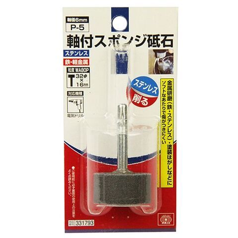 SK11 軸付スポンジ砥石 軸径6mm 長さ16mm 砥石32mm 藤原産業 ジクツキスポンジトイシP-5 【返品種別B】