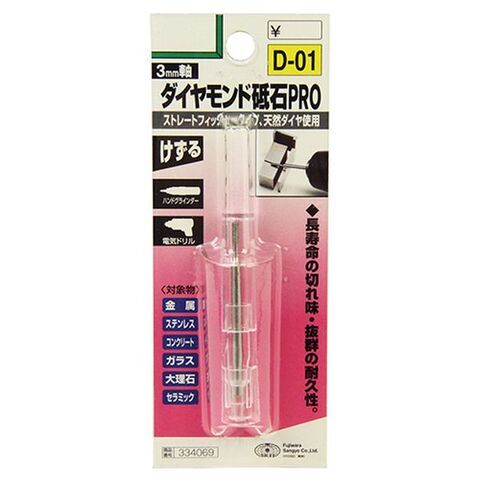 SK11 軸付ダイヤモンド砥石 軸径3mm 砥石6.0×2.0mm ストレートフィッシャータイプ 藤原産業 3.0D-01 【返品種別B】