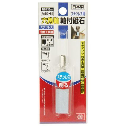 SK11 六角軸軸付砥石 ステンレス用 13×25mm 円筒型 6.35mm六角軸 藤原産業 NO.50-HEX 【返品種別B】