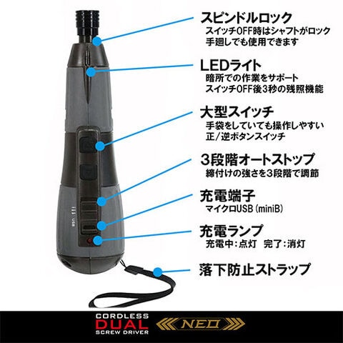 ◆ボタン操作ひとつで、電動ドライバーとして使用でき、また手回しドライバーとして使えるシャフトロック機能付きです。