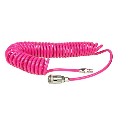 ◆伸ばして作業ができ、縮めて収納できる伸縮で邪魔にならないコイル状のエアホースです。