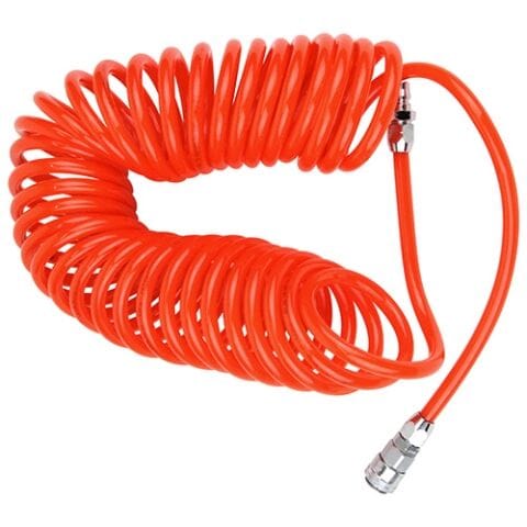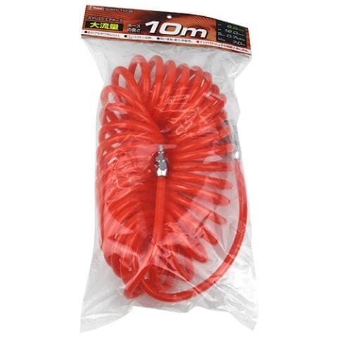 ◆伸ばして作業ができ、縮めて収納できる伸縮で邪魔にならないコイル状のエアホースです。