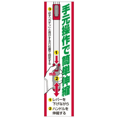 ◆手元のスイッチで楽に操作ができる伸縮ハンドルです。