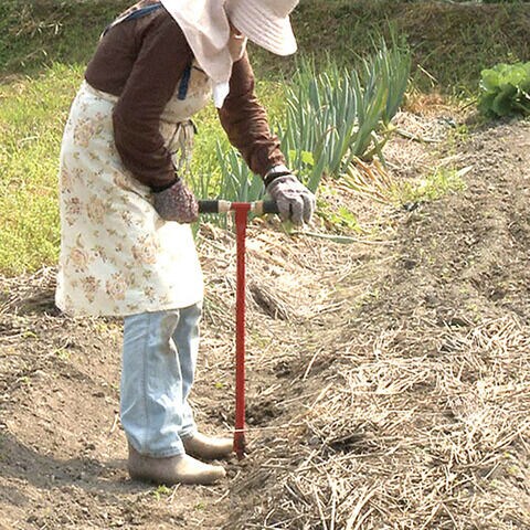 ◆刺さりにくい土への支柱立てを立ったまま下穴あけが出来ます。